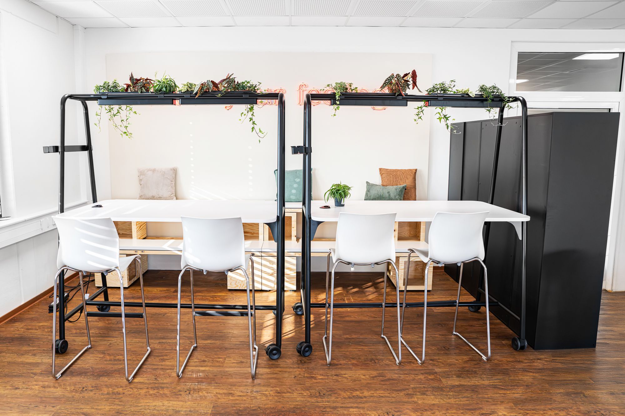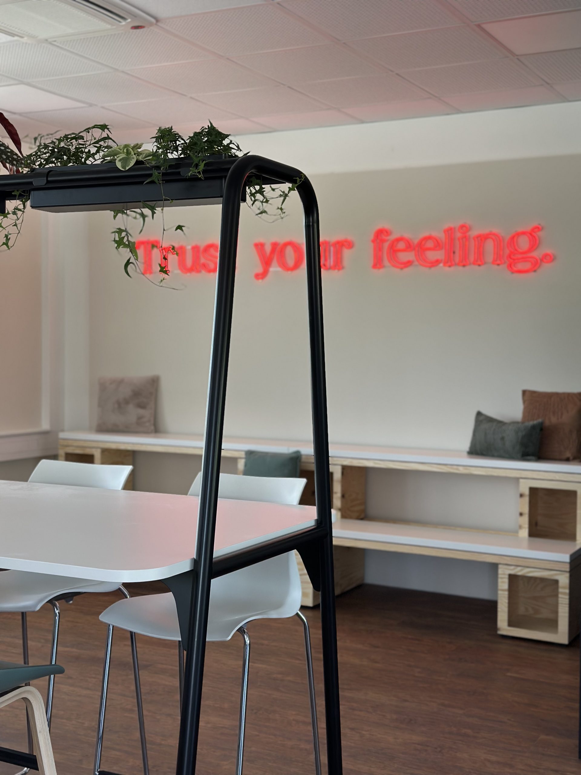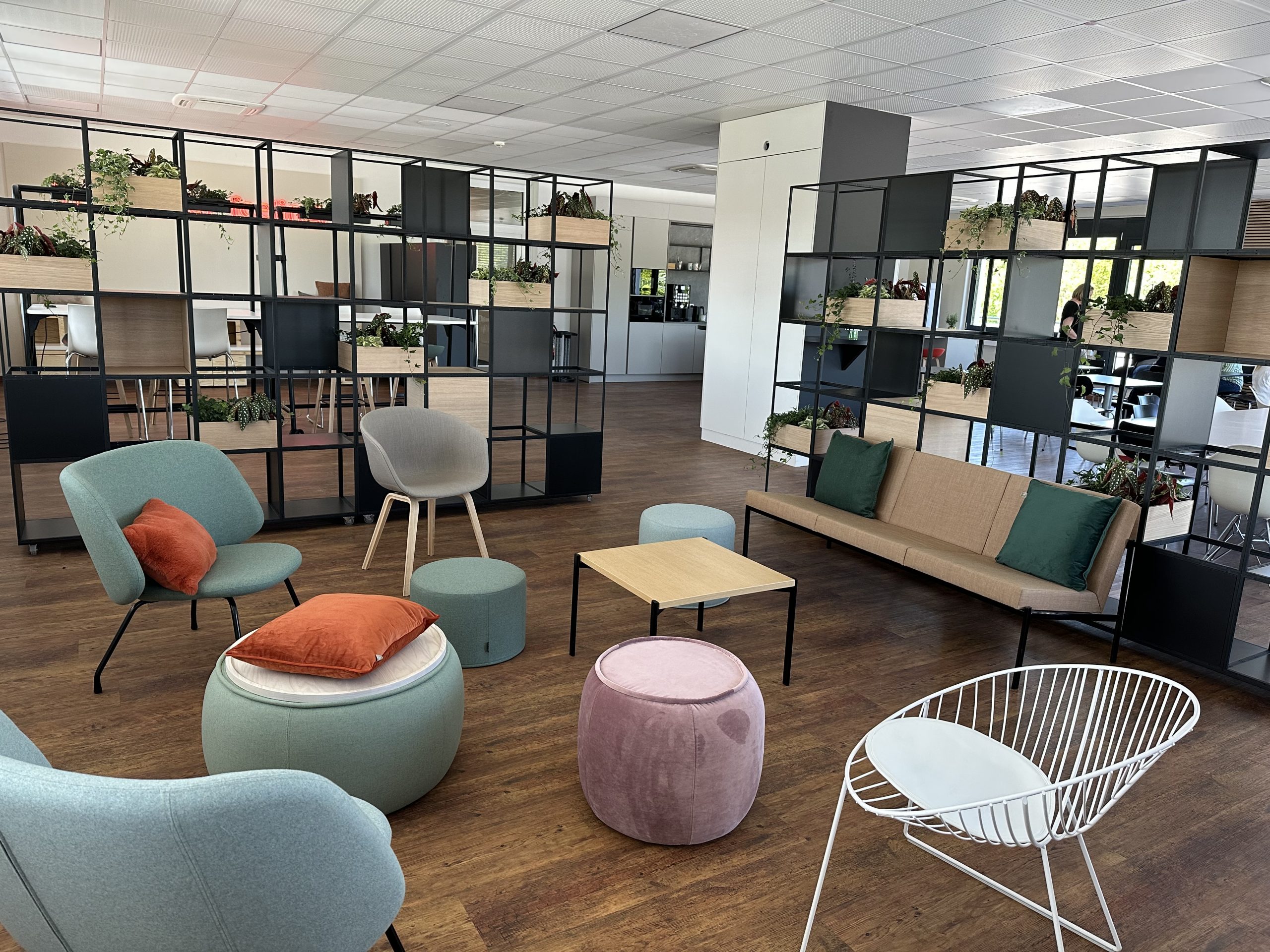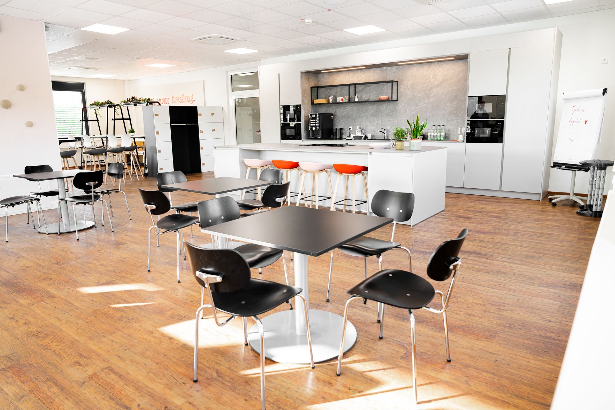 • besondere Leistungen: individuelle grafische Wandgestaltung sowie die Integration zahlreicher Bestandsmöbel zur weiteren Nutzung im neuen Gestaltungskonzept