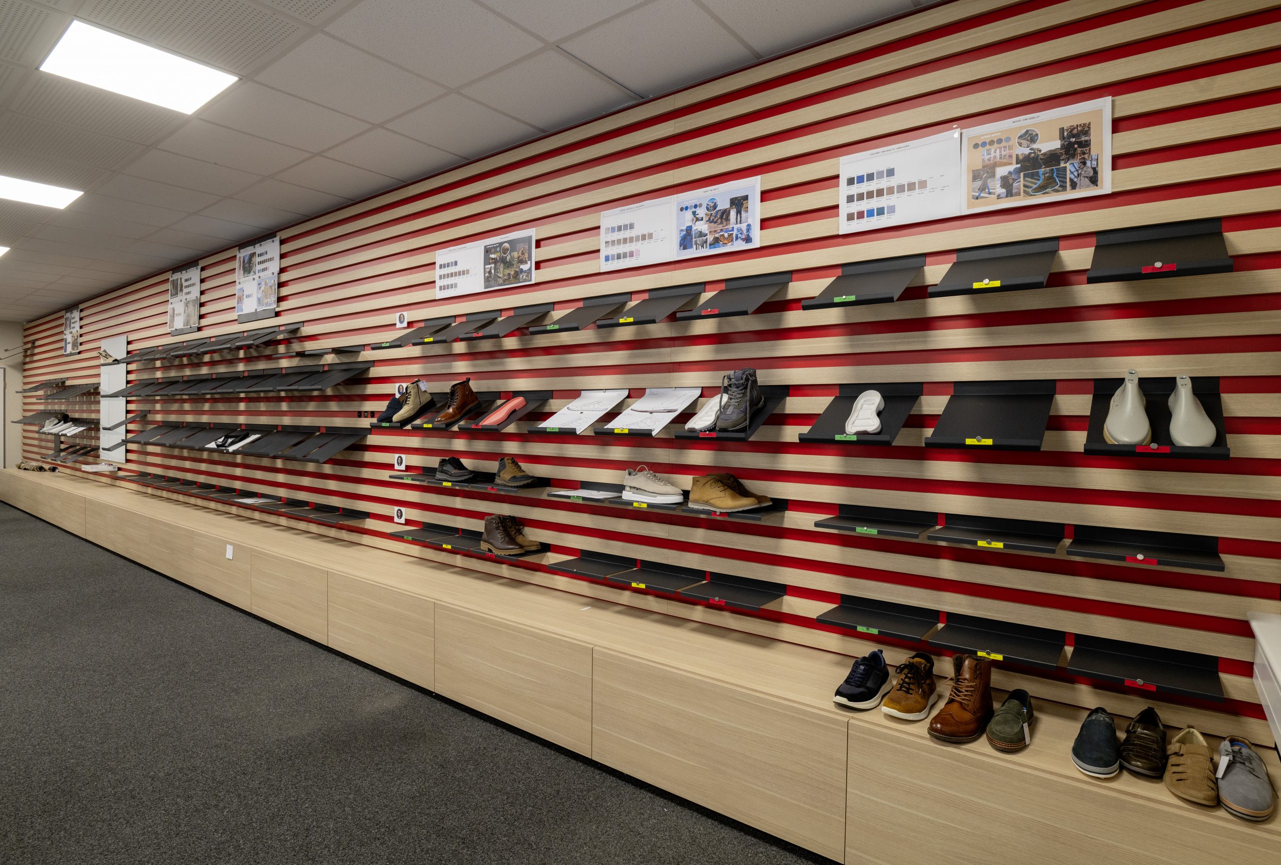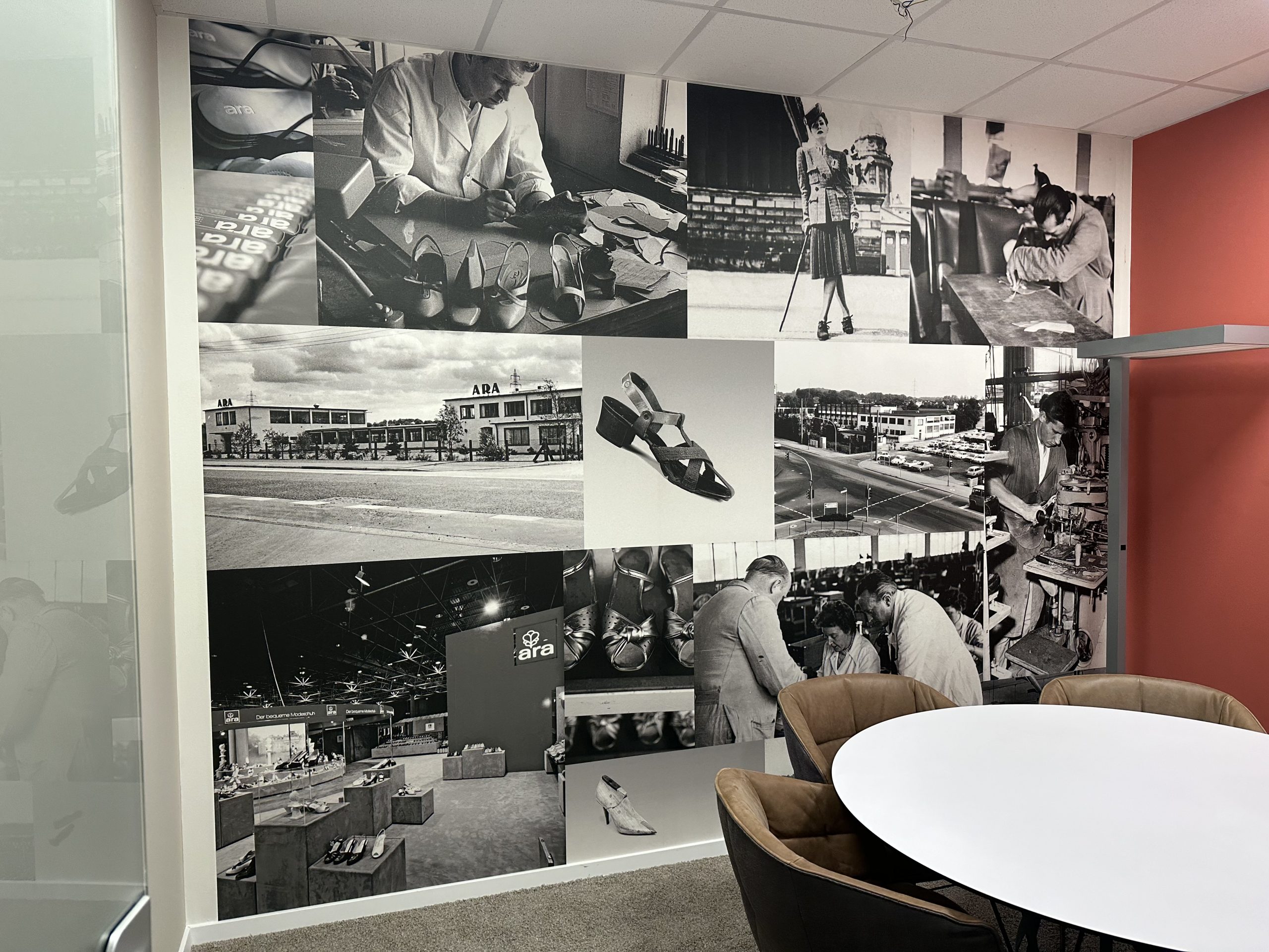 Für das Unternehmen ara Shoes haben wir die Gestaltung der neuen Firmen-Zentrale in Langenfeld übernommen. Wir haben bestehende Key-Visuals als Gestaltungselemente genutzt und mit der neuen Kollektionswand einen zentralen und inspirierenden Ort für das Produkt- und Designteam geschaffen, die dabei unterstützt, Trends, Themen und Farbwelten auf einen Blick zu erfassen, Entscheidungen schneller zu treffen und die Abstimmung im Team effizienter zu gestalten.